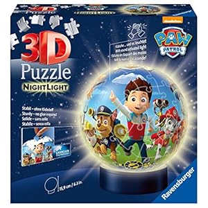 Ravensburger 3D Puzzle 11842 – Nachtlicht Puzzle-Ball Paw Patrol – 72 Teile – ab 6 Jahren, LED Nachttischlampe mit…