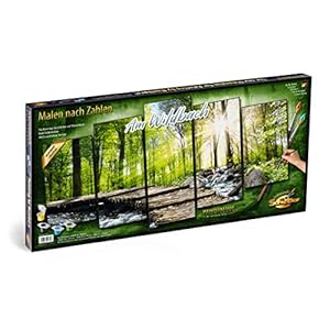 Schipper 609450774 Malen nach Zahlen – Am Wildbach – Bild malen für Erwachsene, inklusive Pinsel und Acrylfarben, 5 Bilder, Meisterklasse Polyptychon – Profi-Edition, 132 x 72 cm