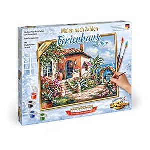 Schipper 609240795 Malen nach Zahlen – Ferienhaus am Meer – Bilder malen für Erwachsene, inklusive Pinsel und…