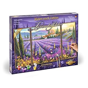 Schipper 609260604 Malen nach Zahlen, Lavendelfelder – Bilder malen für Erwachsene, inklusive Pinsel und Acrylfarben, Triptychon, 50 x 80 cm