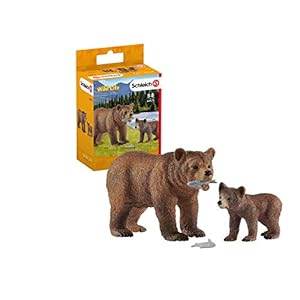 schleich 42473 Grizzlybär-Mutter mit Jungem, für Kinder ab 3+ Jahren, WILD LIFE – Spielset