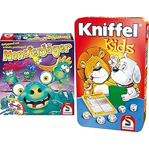 Schmidt Spiele 40557 Monsterjäger, Aktionsspiel, bunt & 51245 BMM Kniffel Kids, Bring Mich mit Spiel in der Metalldose…