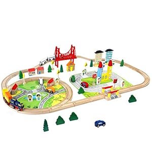 Holzeisenbahn Eisenbahn Kinder Set Zug & Holz Eisenbahnen 33Pcs Lernspiele Kinder Geschenke für 3 4 5 6 Jahre Jungen Mädchen