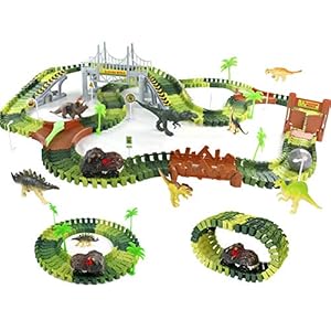 Dinosaurier Spielzeug ab 3 Jahre Junge Auto Spielzeug Autorennbahn 216 Stück Tracks mit Cars Spielzeug & Dinosaurier…
