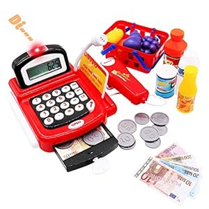 Symiu Kasse Kinder Spielzeug Kaufladen Kaufmannsladen Zubehör Registrierkasse Supermarktkasse mit Elektronische Scanner…