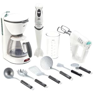 Theo Klein 9625 Braun Kombo-Set I Wertige Spielküchengeräte: batteriebetriebene Kaffeemaschine, Hand- und Stabmixer inkl…
