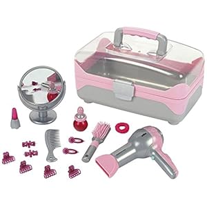 Theo Klein 5862 Braun Frisierkoffer | Mit batteriebetriebenem Haartrockner | Zahlreiches Frisier- und Styling-Zubehör | Spielzeug für Kinder ab drei Jahren