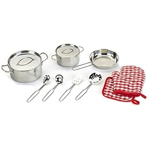 Theo Klein 9428 WMF 9-teiliges Topf- und Küchengeräteset I Hochwertiges Kochgeschirr, Kinderküchen-Zubehör inkl. Topf, Pfanne, Pizzsaschneider, Rührlöffel u.v.m. | Spielzeug für Kinder ab 3 Jahren