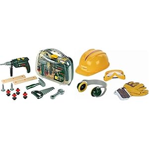 Theo Klein 8435 Bosch Werker-Set I Robuste Kettensäge mit Licht und Sound I Mit Helm und Arbeitshandschuhen für…
