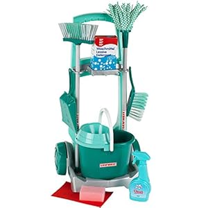 Theo Klein 6562 Leifheit Besenwagen mit robustem Zubehör | Inkl. Wischmop, Eimer, Besen u.v.m. I Maße: 29 cm x 24 cm x 60 cm I Spielzeug für Kinder ab DREI Jahren