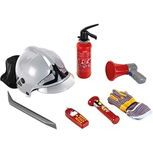 Theo Klein 8928 Feuerwehr-Set | 7-teiliges Set mit Helm, Taschenlampe und vielem mehr | Feuerlöscher mit Spritzfunktion | Verpackungsmaße: 52,4 cm x 35 cm x 20 cm | Spielzeug für Kinder ab 3 Jahren