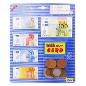 Theo Klein 9605 Euro-Spielgeld mit Kreditkarte I 37 Scheine und 11 Münzen – von der 1-Cent-Münze bis zum 500-Euro-Schein I Maße: 20 cm x 0,5 cm x 20 cm I Spielzeug für Kinder ab 3 Jahren
