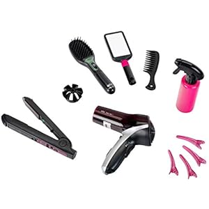 Theo Klein 5885 Klein 5873 Braun Satin Hair 7 Mega Set I Mit Haarglätter, Bürste und vielem mehr I Batteriebetriebener Fön I Verpackungsmaße: 49,5 cm x 8 cm x 26 cm I Spielzeug für Kinder ab 3 Jahren