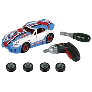 Theo Klein 8668 Bosch Car Tuning-Set | Zerlegbares Auto mit Tuning Zubehör | Mit batteriebetriebenem Akkuschrauber Ixolino | Maße: 20,5 cm x 9,5 cm x 6 cm | Spielzeug für Kinder ab 3 Jahren