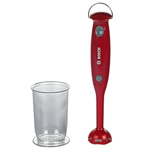 Theo Klein 9566 Bosch Stabmixer, rot I Kindersichere Nachbildung mit rotierenden Klingen-Attrappen und Messbecher I Maße: 4 cm x 4 cm x 25 cm I Spielzeug für Kinder ab 3 Jahren