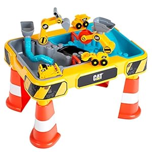 Theo Klein 3208 CAT Sand- und Wasser Spieltisch I Zwei Becken inkl. Rad- und Löffelbagger, Brücke, Rohren und Stoppern I…