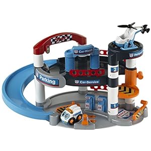 Theo Klein 2908 – Parkhaus-Set „Bosch Car Service“ mit 2 Ebenen und Sound-Auto