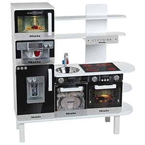 Theo Klein 9459 Große Spielzeugküche Miele aus Holz I Weiße Holzküche inkl. Herd, Geschirrspüler und Espressomaschine I…