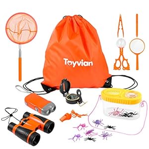 Toyvian 18 in 1 Kinder Outdoor Exploration Spielzeug Abenteuer Kit – Fernglas, Taschenlampe, Kompass, Lupe, Käferfänger…