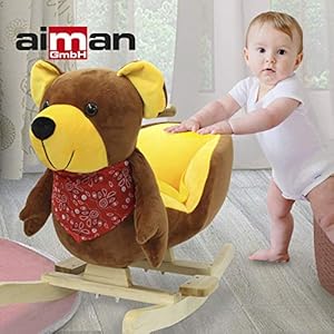 Aiman – Schaukeltier Bär – Schaukelspielzeug aus Plüsch und Holz zum Aufsitzen, Geeignet für Kleinkinder, Hohe…