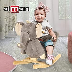 Aiman – Schaukeltier Elefant –Schaukelspielzeug aus Plüsch und Holz zum Aufsitzen, Für Kleinkinder, Plüschsessel…