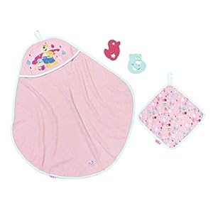 Zapf Creation 827444 BABY born Bath Kapuzenhandtuch & Schwamm Puppenzubehör 4-teilig, rosa
