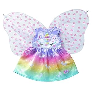 BABY born Einhorn Feen Outfit, buntes Puppenkostüm mit Flügeln und Einhorn-Motiv für 43 cm Puppen, 829301 Zapf Creation