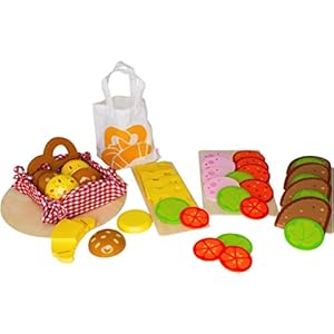 Bambilino Goki Brötchen, Brotscheiben, Wurstscheiben und Käseaufschnitt, mit Salat- und Gemüsebeilage, Set Brötchen, Brot, Wurst, Käse für Kaufmannsladen & Spielküche