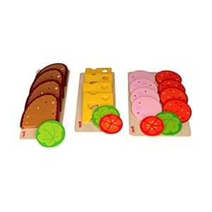 Bambilino Goki Brotscheiben, Wurstscheiben und Käseaufschnitt, mit Salat- und Gemüsebeilage – Set Brot, Wurst, Käse aus Holz als Zubehör für Kaufmannsladen & Spielküche