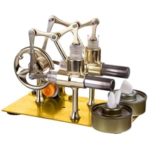 Batop Stirlingmotor Bausatz 2-Zylinder Hot Air Steam Externe Verbrennung Stirling Engine Kit Stirlingmotor Modell, Physik Unterricht Spielzeug