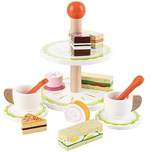 bee SMART Holz Teeservice | Tee Spielset für Kinder mit Kuchen, Ständer, Teekanne, Essen & Zubehör | Kleinkinder Rollenspiel Küchenspielzeug | Geburtstagsgeschenke für Jungen & Mädchen | 17 Stck
