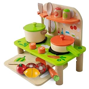 Küchen-Set aus Holz 19 stck mit zubehör | Spielset für Kinder mit Töpfen, Essen, Schneidebrett, Utensilien, Obst & gemüsespielzeug | Holzspielzeug Geburtstagsgeschenke für Kleinkind Jungen & Mädchen