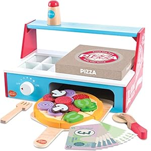 bee SMART Kinder Pizza aus Holz und Zubehör, 30+ teiliges Set mit Schneidepizza mit Schneideroller, Ofen, Toppings…