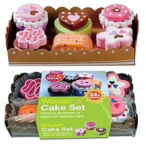 bee SMART Kuchen aus Holz in Serviertabletts | Kinder-Rollenspielset | Rollenspiel- und Fantasie-Spielküchenset für Kinder | Geburtstagsgeschenke für Kleinkinder Jungen & Mädchen