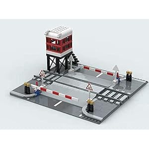 Bahnübergang mit Schienen und Stellwerkhaus für Bausteine Eisenbahnen, Klemmbausteine Bauset
