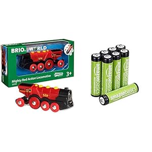 BRIO Bahn 33592 – Rote Lola Batterielok & Amazon Basics AAA-Batterien, wiederaufladbar, vorgeladen, 8 Stück (Aussehen…