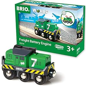 BRIO World 33214 Batterie-Frachtlok – Grüne Batterie-Lok mit Frontscheinwerfern – Empfohlen ab 3 Jahren