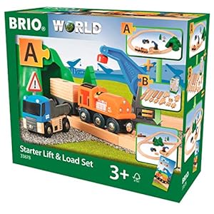 BRIO World 33878 – Starterset Güterzug mit Kran – Der ideale Einstieg in die Holzeisenbahn Empfohlen für Kinder ab 3 Jahren