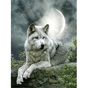 CaptainCrafts DIY Malen nach Zahlen 16×20 Zoll Tier Nacht Wolf (Ohne Frame)