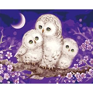CaptainCrafts Neues Malen nach Zahlen für Erwachsene Anfänger DIY Ölgemälde 16×20 Zoll Eule Glückliche Familie (Ohne…