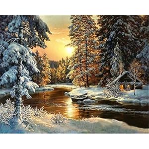 CaptainCrafts Neues Malen nach Zahlen für Erwachsene Anfänger DIY Ölgemälde 16×20 Zoll Rote Sonnenuntergang Glühen…