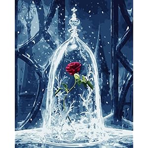 CaptainCrafts Malen nach Zahlen Erwachsene, Malen nach Zahlen Anfänger DIY Ölmalerei Kit 16×20 Zoll Kunsthandwerk Geschenk Zuhause Wanddekoration (Rahmenlos, Rosenblüten im Glasdeckel)