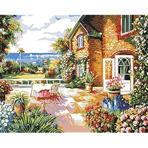CaptainCrafts New Malen nach Zahlen für Erwachsene 16×20 Zoll Leinwand Ferienwohnungen Mailand, Beach House Garden…