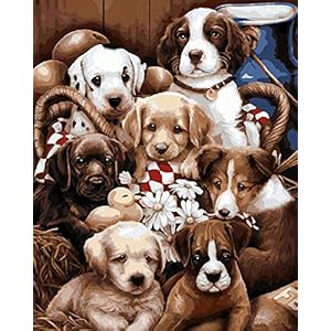 CaptainCrafts New Malen nach Zahlen 16×20 für Erwachsene, K0inder Leinwand – Eine Gruppe von Hunden (Mit Rahmen)