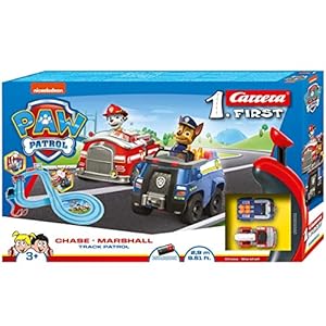 Carrera 20063031 FIRST PAW PATROL Track Patrol 2,4m Rennstrecken-Set | 2 ferngesteuerte Fahrzeuge mit Chase und Marshall | mit Handregler & Streckenteilen | Spielzeug für Kinder ab 3 Jahren