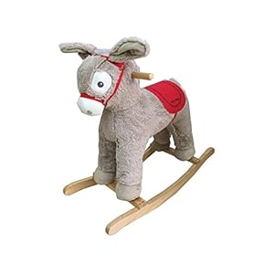 Dunjo® Schaukelpferd Esel | Plüsch Baby Schaukel-Esel | Schaukeltier | 74x30x64cm | aus Holz mit Soundmodul