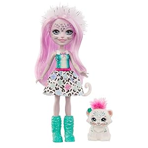 Enchantimals GJX42 – Sybill Snow Leopard & Flake, Tierfreund Figur, ca. 15 cm große Puppe mit abnehmbaren Rock, Stiefeln und Fell-Haarband, tolles Geschenk für Kinder von 4+