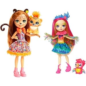 Enchantimals FJJ20 Gepardenmädchen Cherish Cheetah Puppe & Mattel Games FJJ21 Enchantimals Papageienmädchen Peeki Parrot…