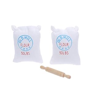 EXCEART Puppenhaus Küchenzubehör Miniatur Mehlsack Nudelholz Mini Puppenstubenzubehör 1:12 Puppenhaus Zubehör…