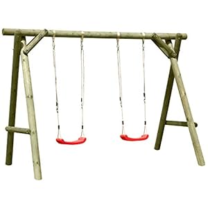 Gartenpirat Classic Kinderschaukel aus Holz Outdoor – Doppelschaukel mit 2 Schaukelsitzen 240 x 190 x 220 cm TÜV geprüft